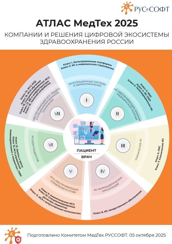 Опубликован Атлас МедТех решений и компетенций РУССОФТ 2025, в который вошли программные продукты ООО «Фармасофт».